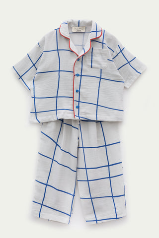 Mavi Kareli Müslin Pijama Takımı