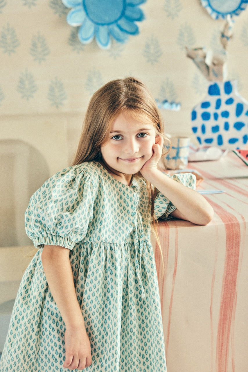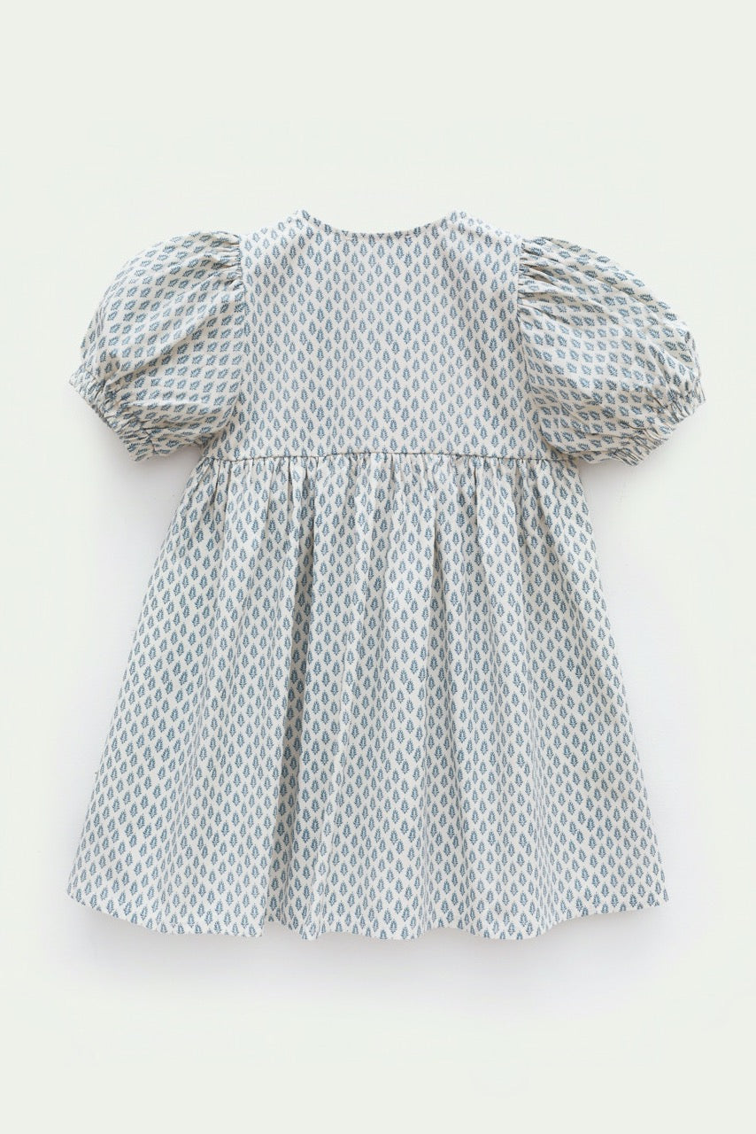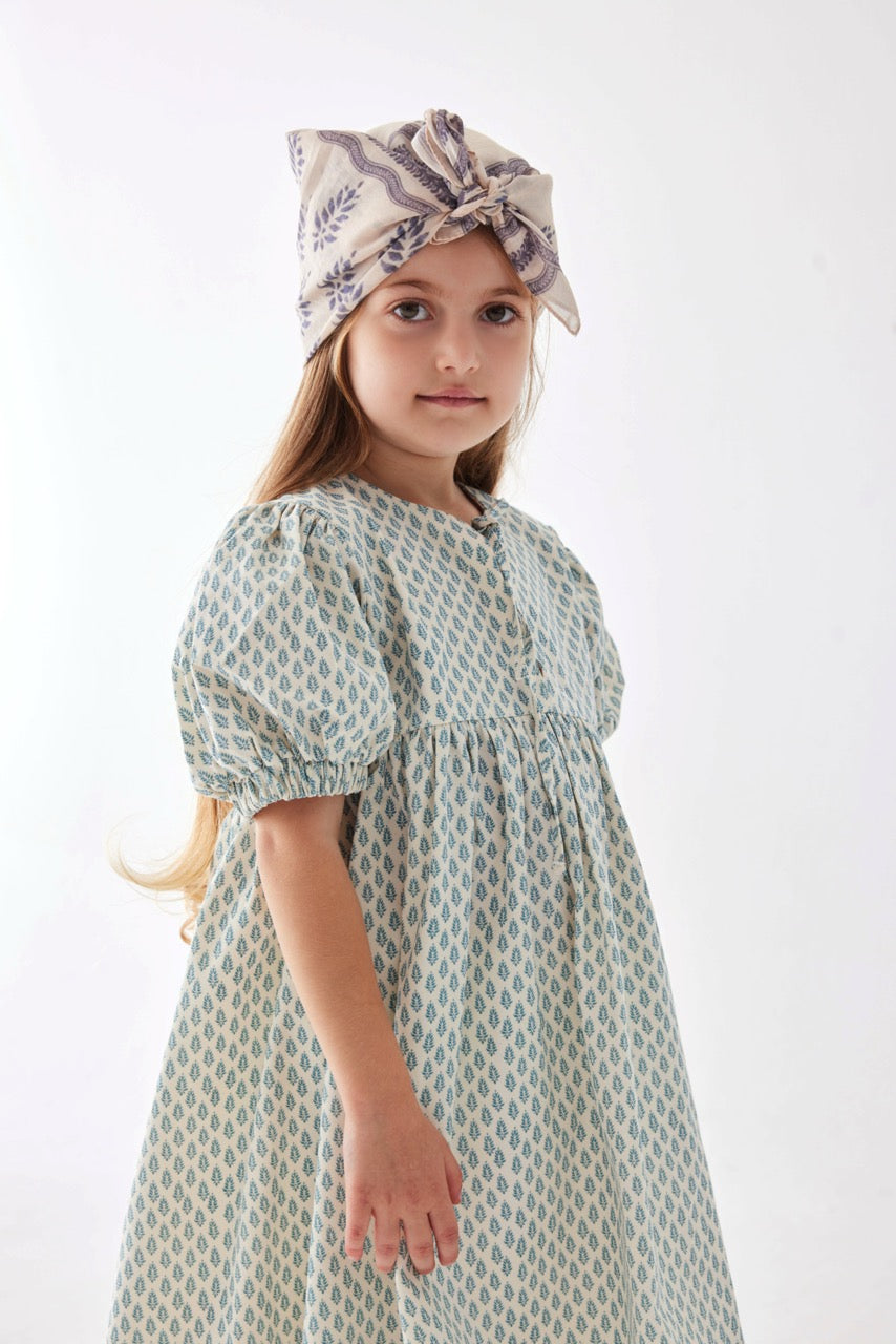 Bisiklet yaka, önden ip detaylı, lastik kenarlı kısa kollu , diz altı boy elbise.