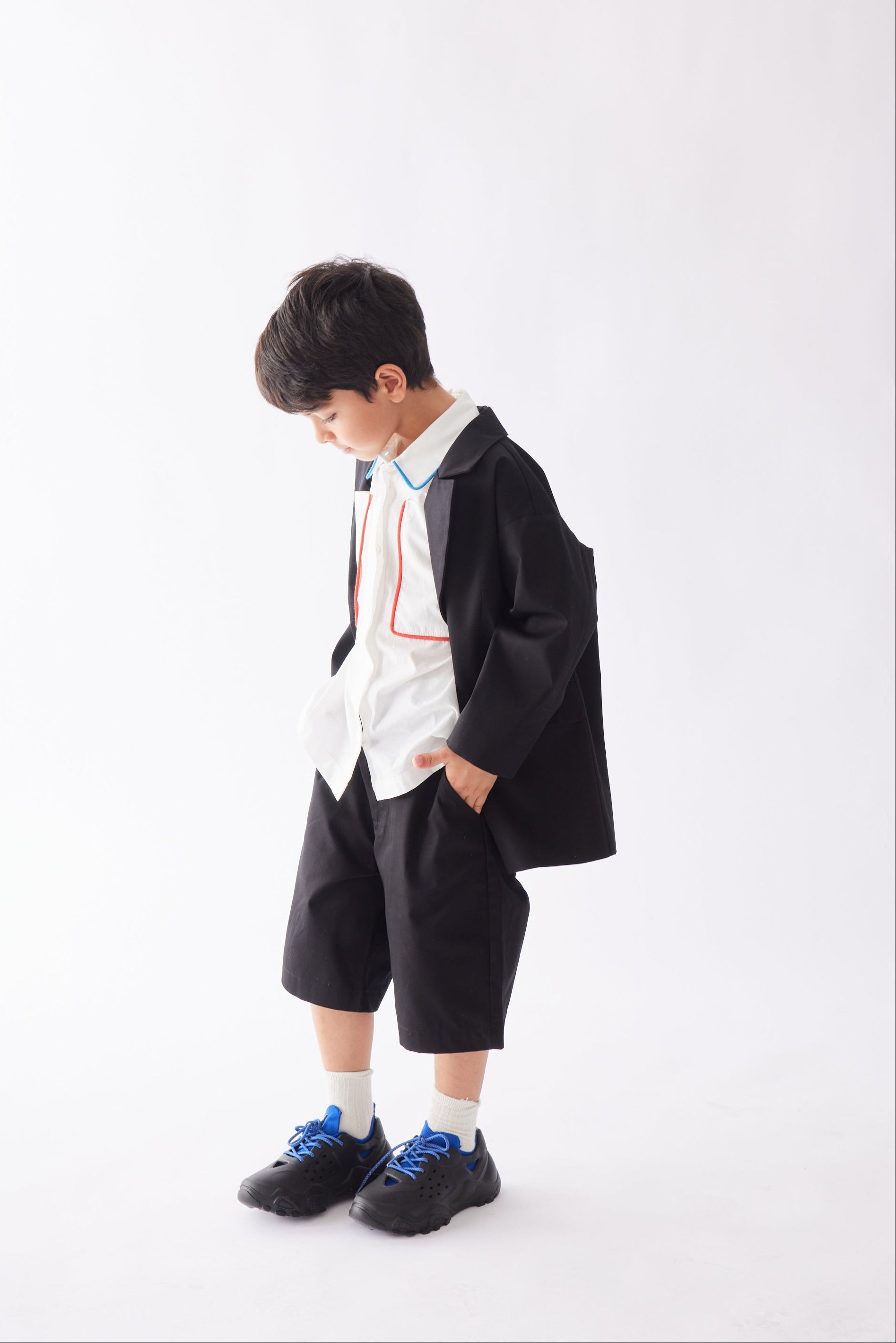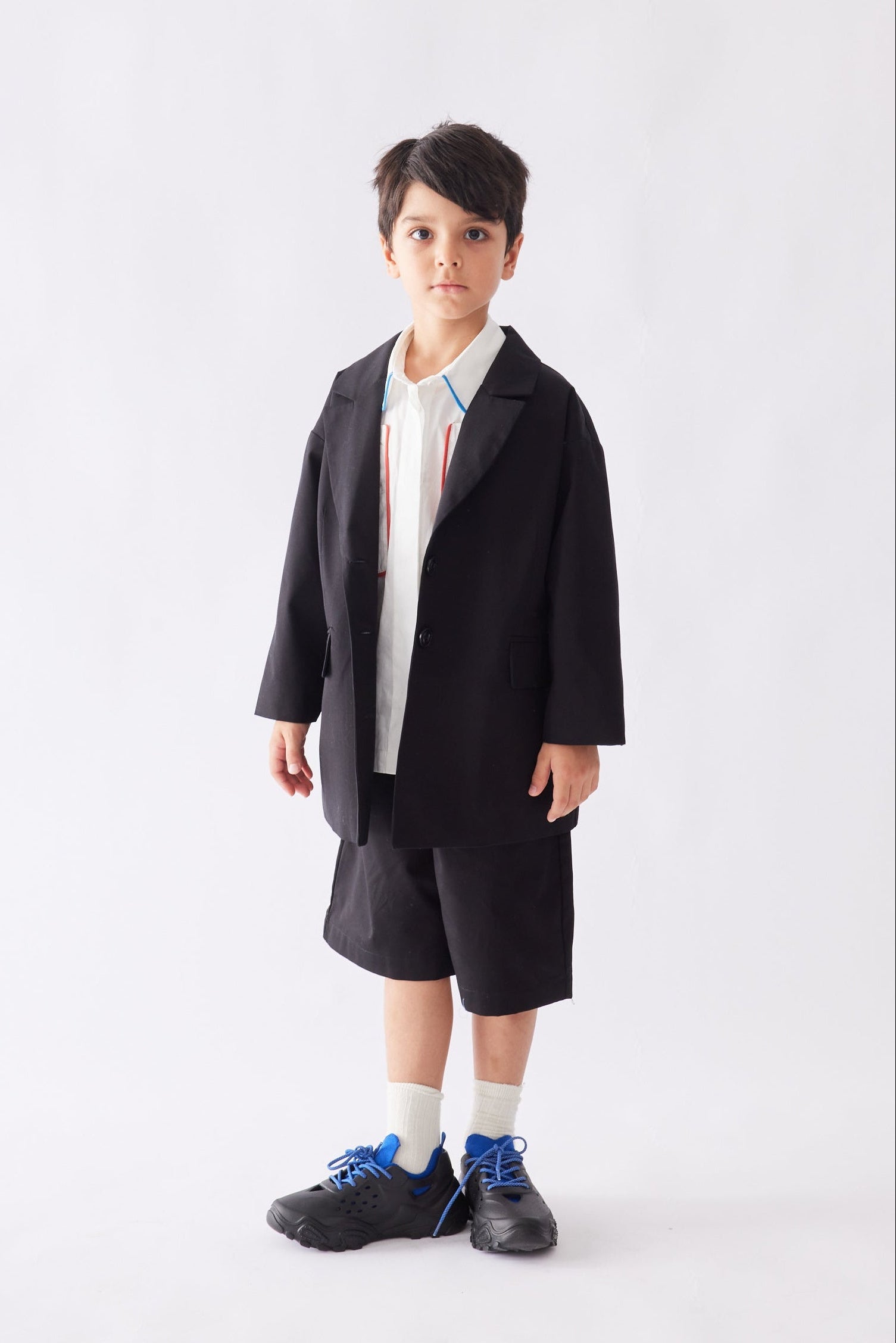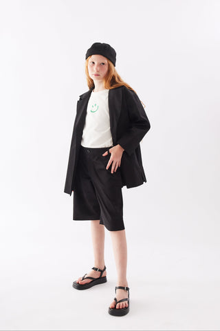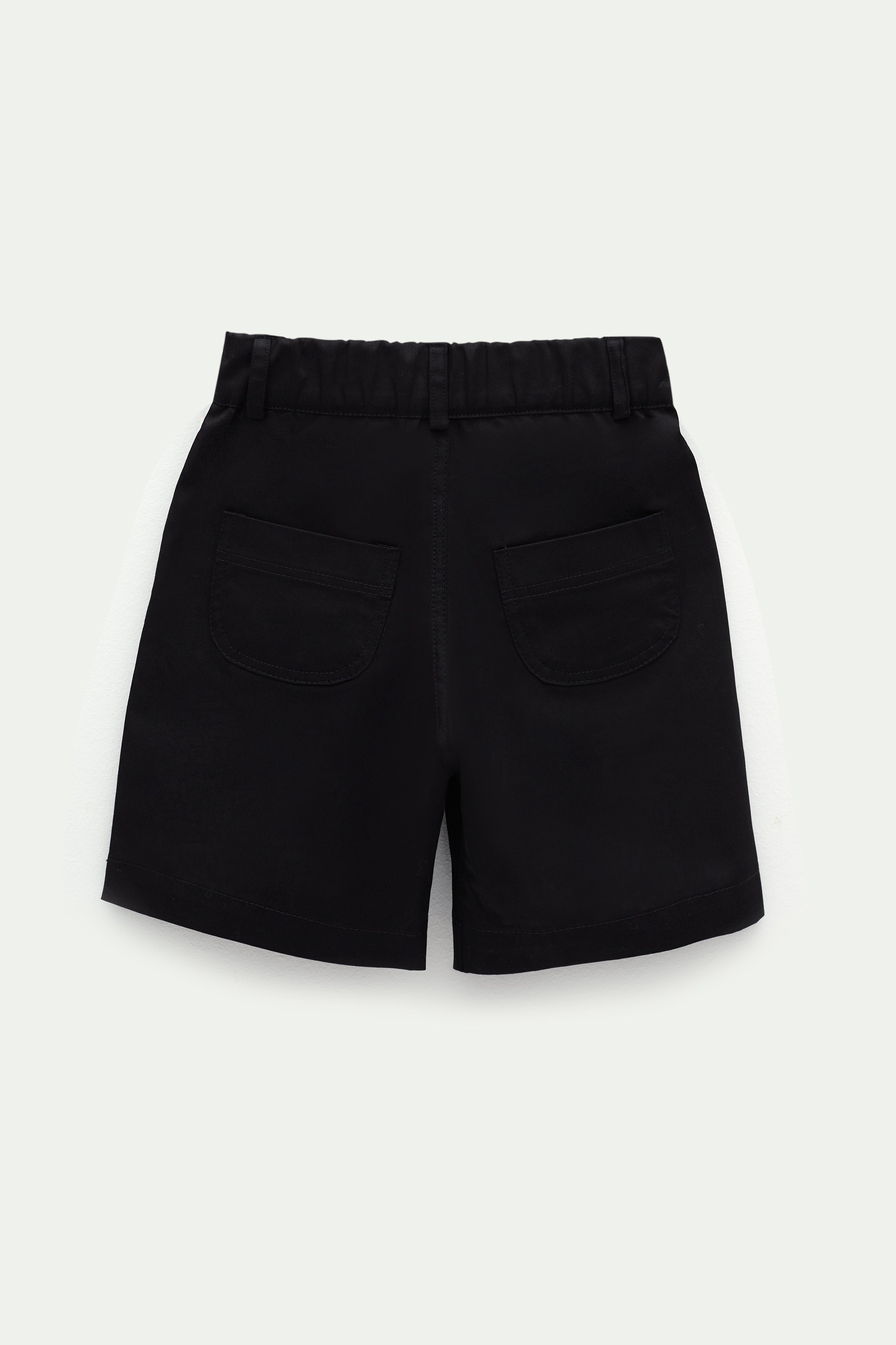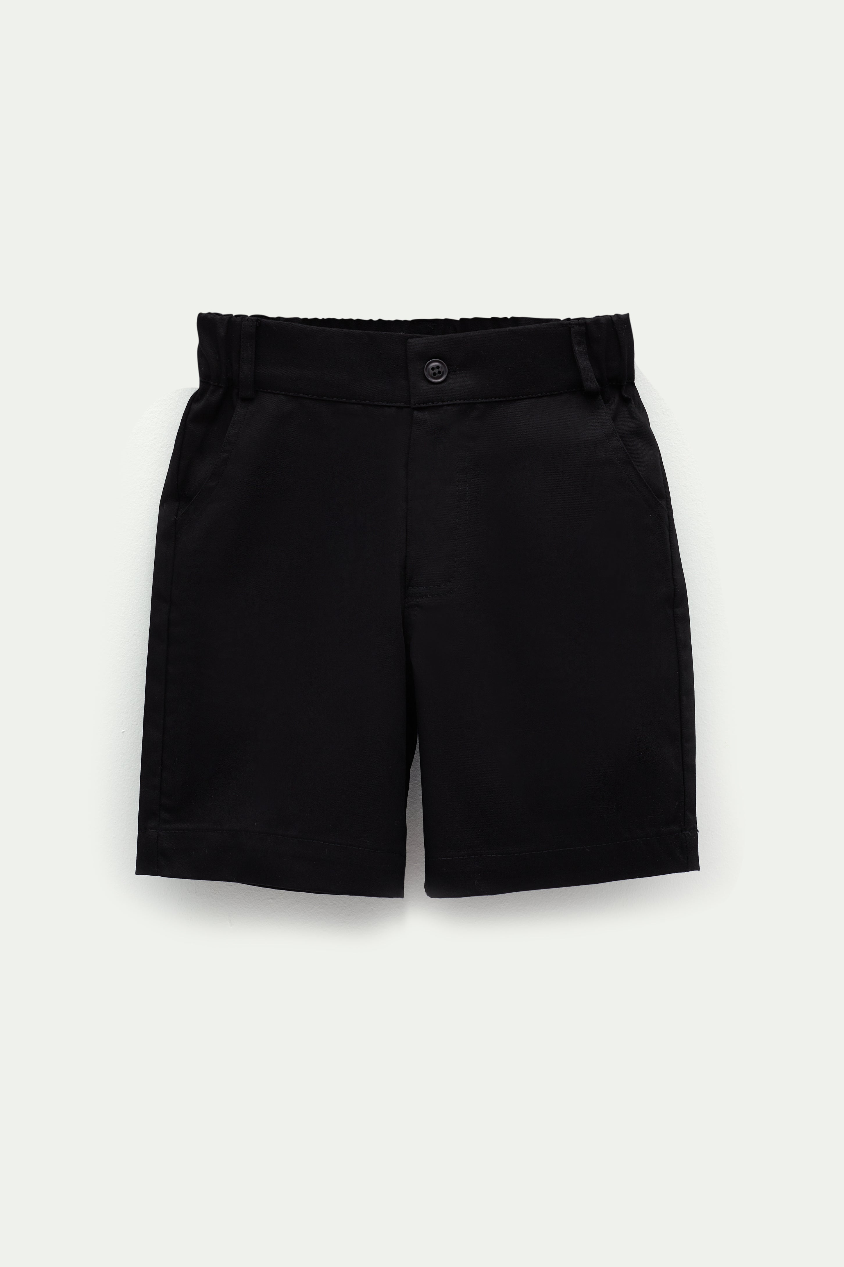 Önden fermuar ve düğmeli, arka belden lastikli, diz hizasında şort.