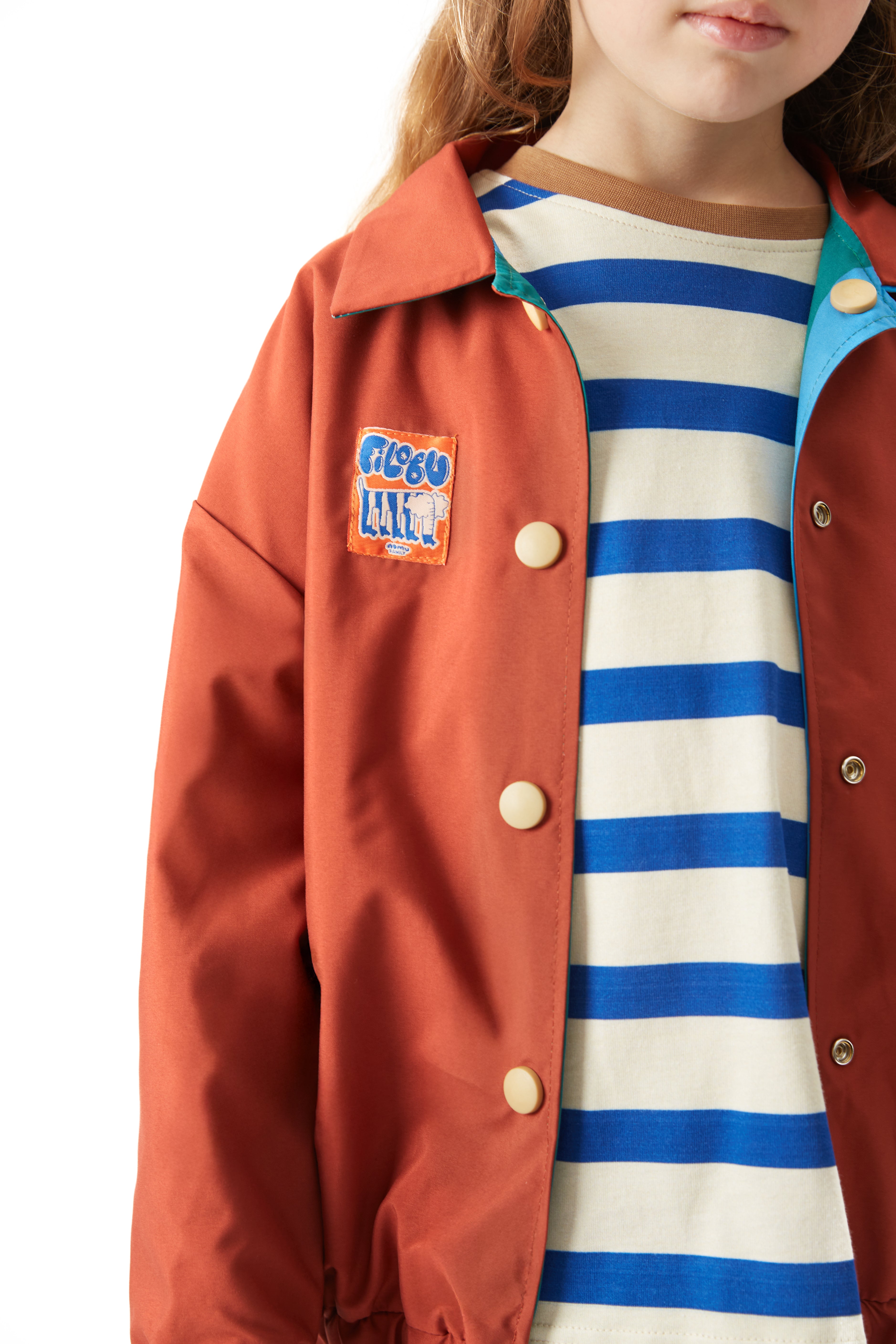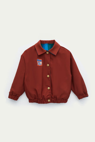 Çift yönlü kullanıma uygun, gömlek yakalı, her iki yönden cep detaylı, kol ve etek ucu lastikli, çıtçıtlı bomber ceket.