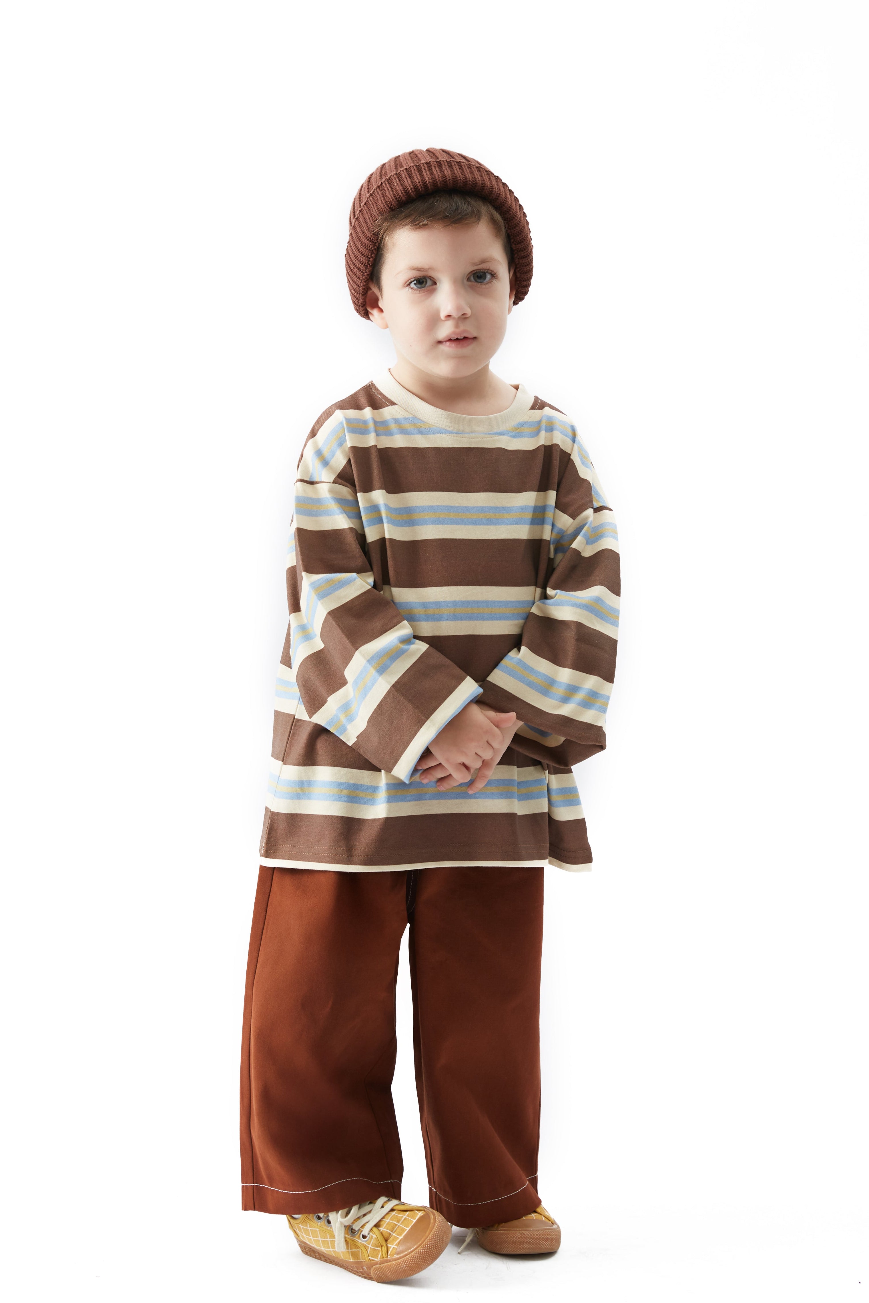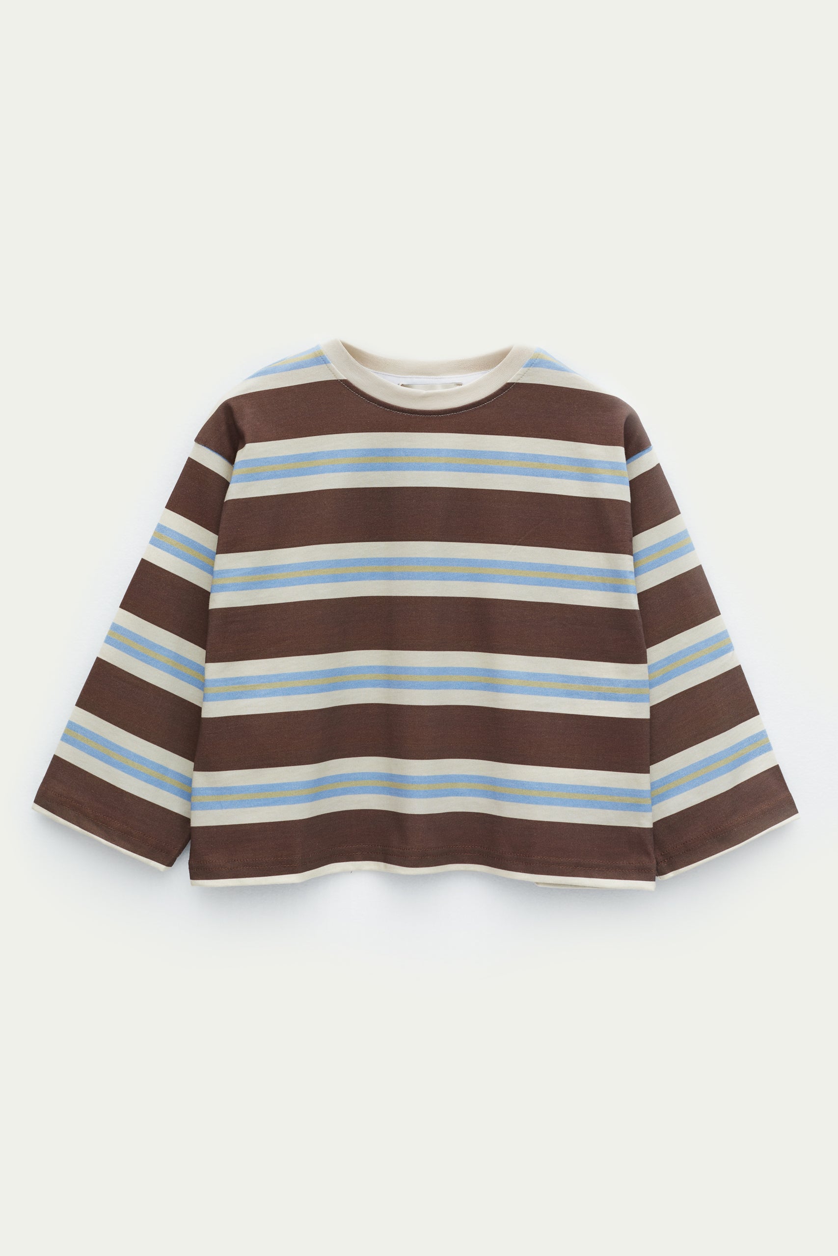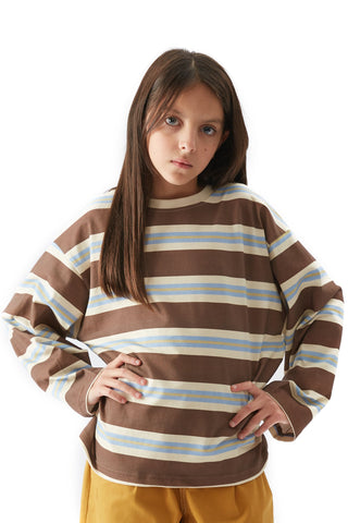 Oversize ve salaş kalıp, çizgi desen, bisiklet ve ribana yakalı, uzun kollu tshirt.