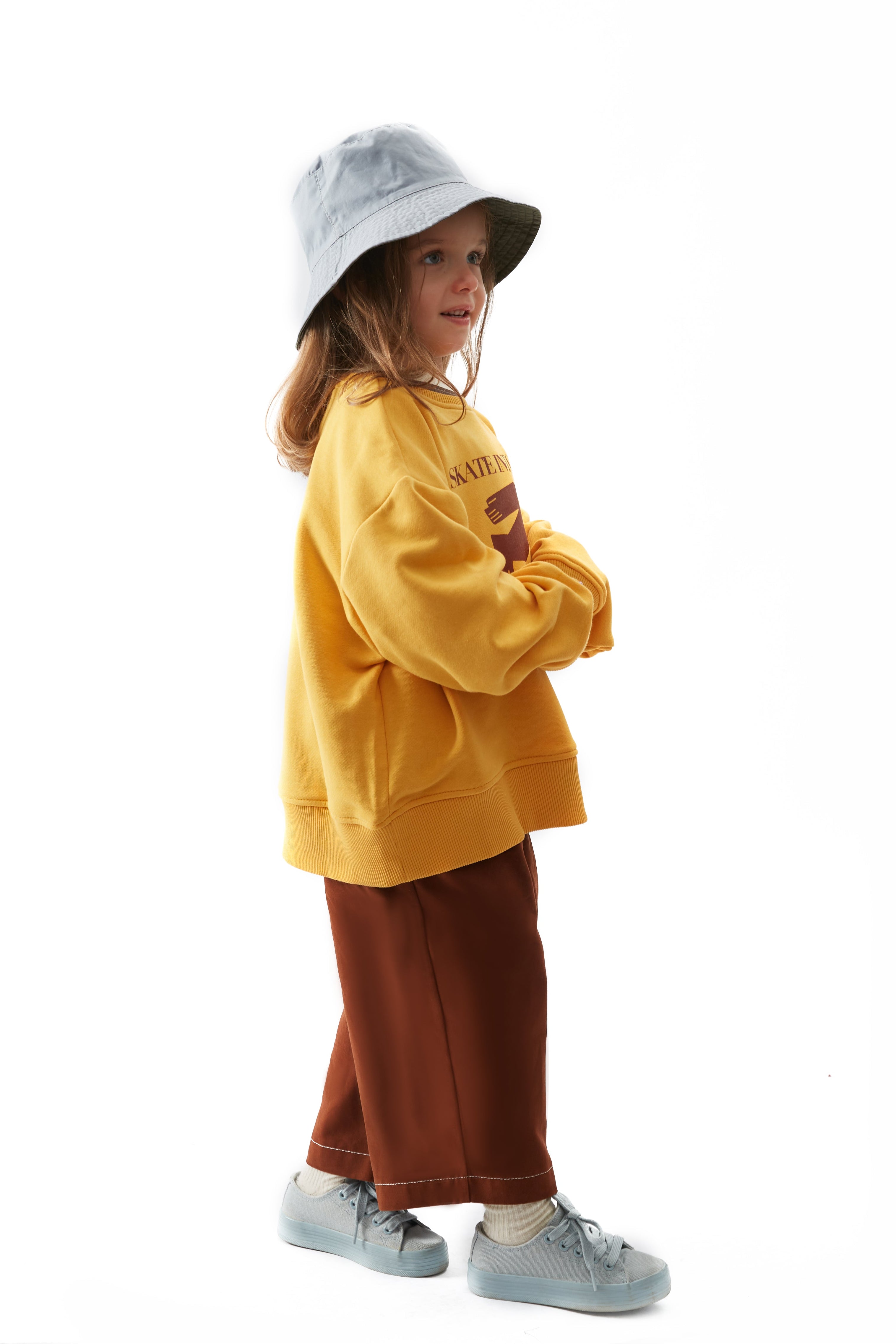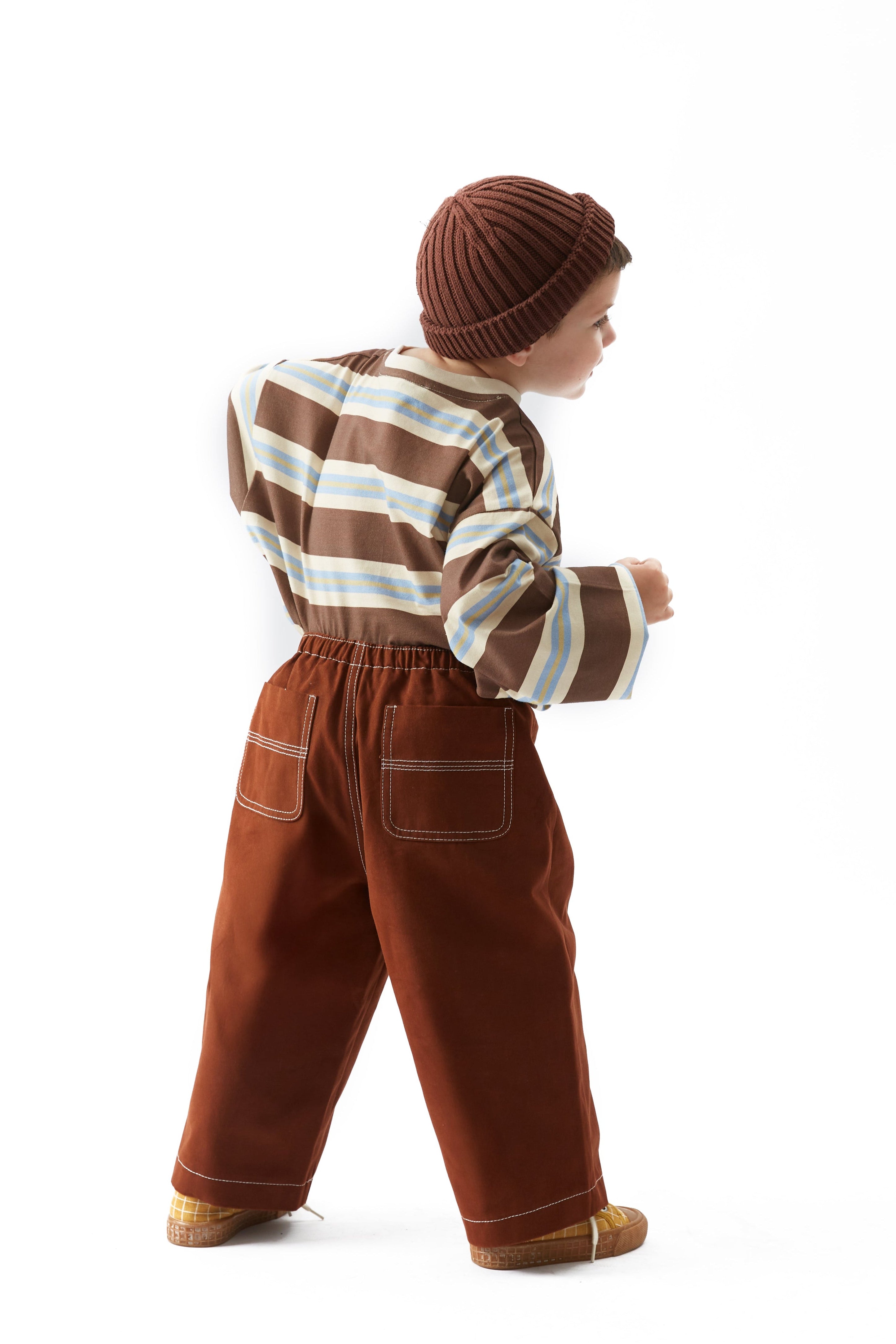 Kahve tonuyla dikkat çeken, pileli ve bol kesimiyle duruşa özgün bir ifade katan bir parça. Formu, hareket halindeyken bile dengeli ve rahat bir his bırakır. Günlük akışa uyum sağlarken sade bir karakter taşır. Farklı üstlerle bir araya geldiğinde ölçülü ve karakterli bir stil oluşturur.