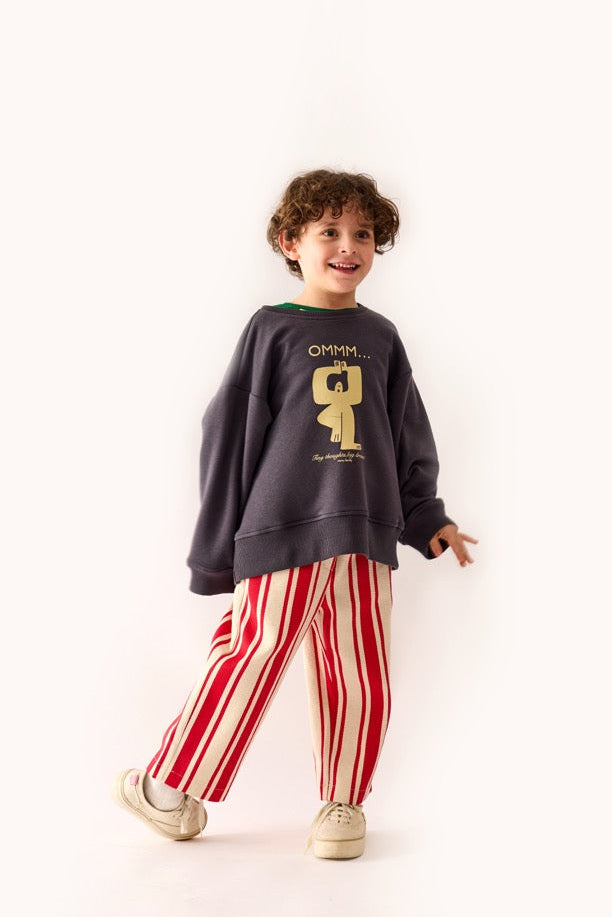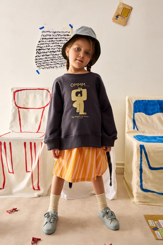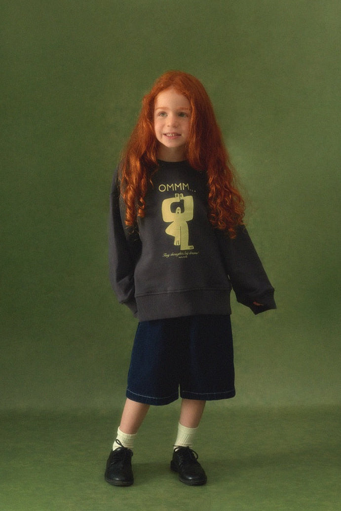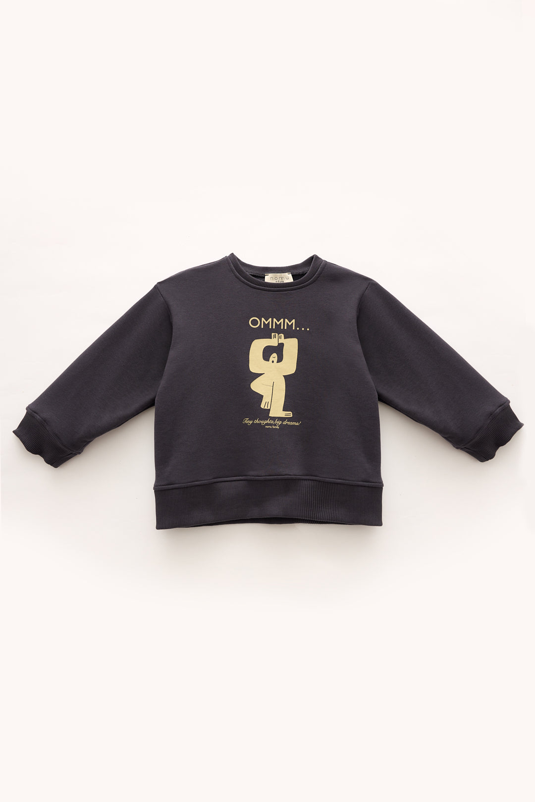 Oversize ve geniş kalıp, pamuklu, önde tasarım baskılı, bisiklet yakalı, uzun kollu sweatshirt.