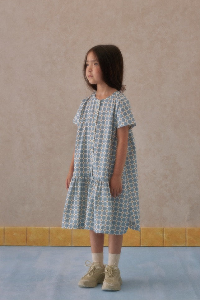Papatya desenleriyle sakin ama belirgin bir ifade sunan elbise. Formu, hareket halindeyken akışkan bir his ve dengeli bir duruş sağlar. Günlük akışa ve hafif özel anlara uyumlu bir ritim katarken sade ama karakterli bir stil tamamlar.