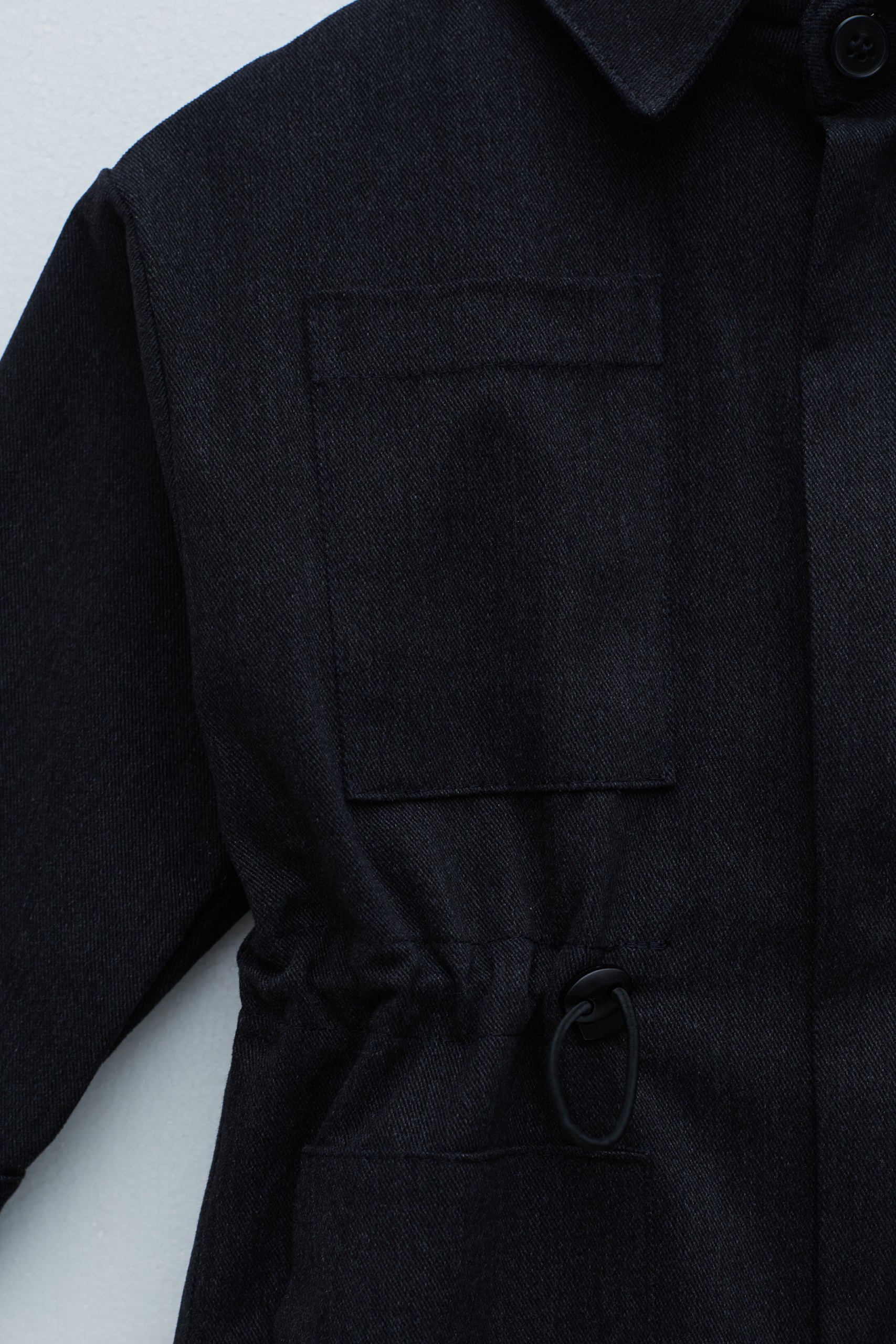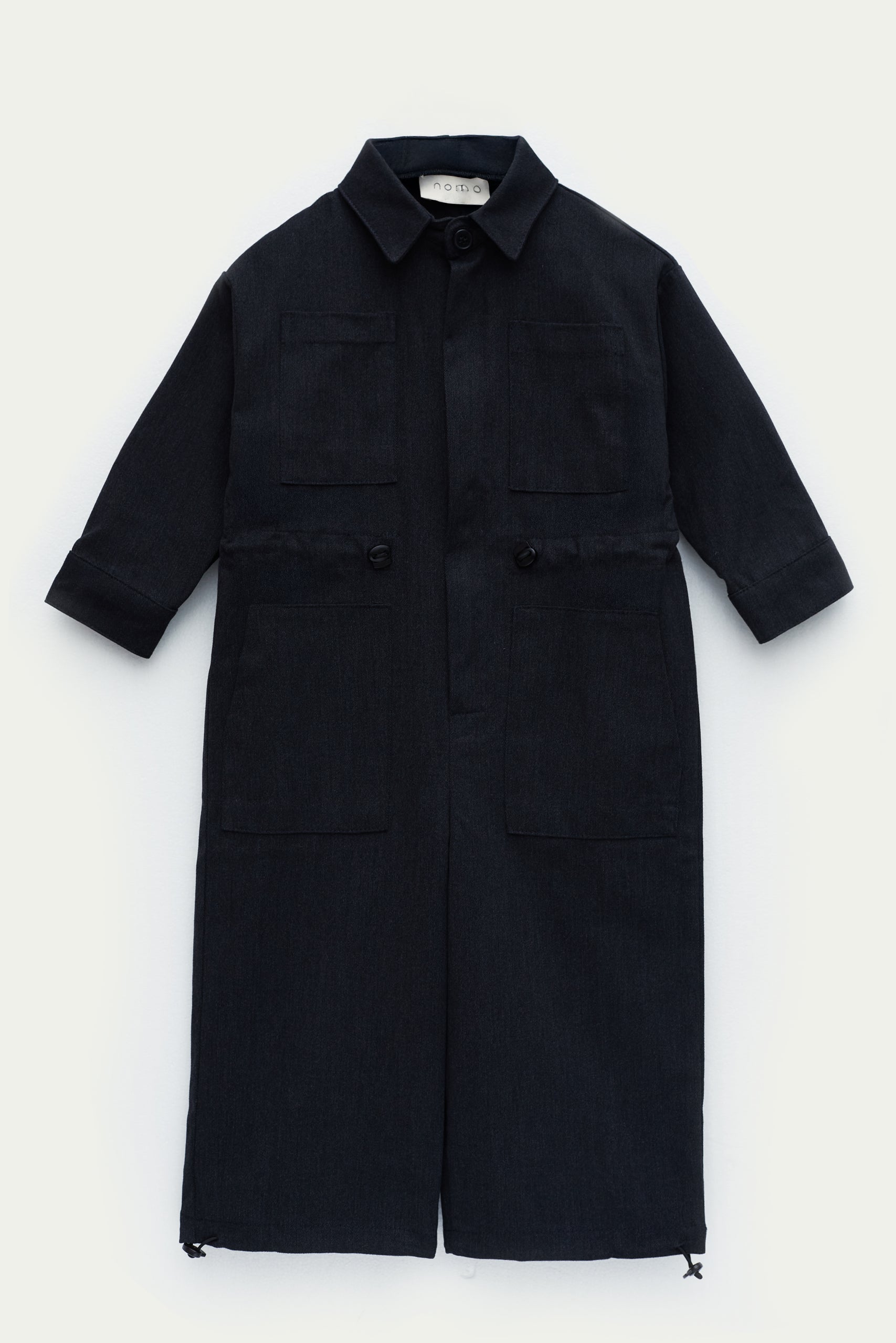 Oversize kalıp, düşük ağ, gömlek yakalı, cep detaylı, bel ve paçalardan stoperli, uzun kollu tulum.
