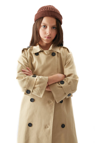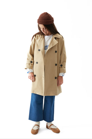 Camel tonuyla zamanın ötesinde sakin ve net bir ifade sunan oversize trençkot. Kesimi, günlük akışta özgür bir hareket alanı ve dengeli bir duruş yaratır. Farklı kombinlerle kolayca bütünleşir, sade ama karakterli bir stil tamamlar. Mevsim geçişlerinde ritme uyum sağlayan ölçülü bir parça hissi bırakır.