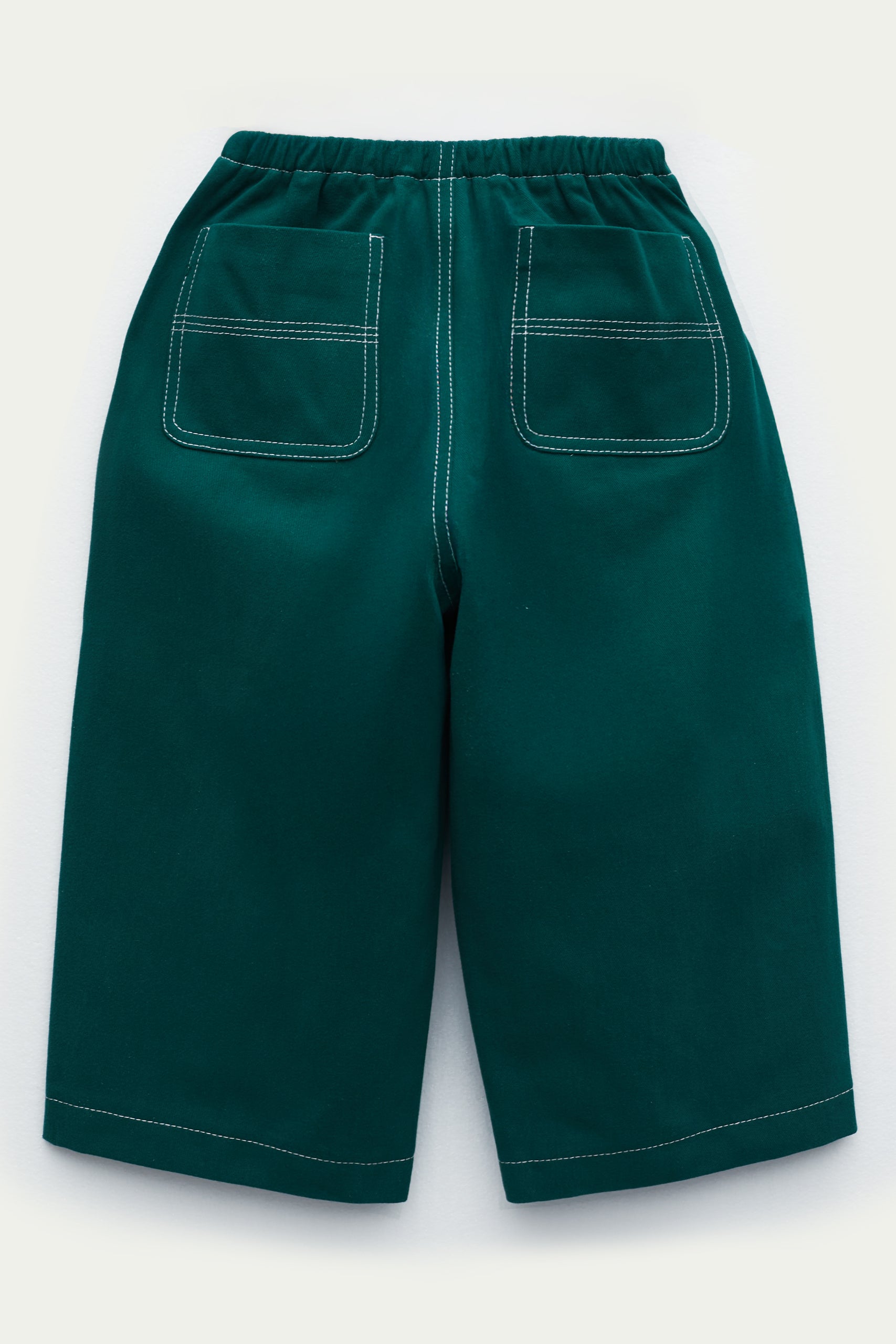 Yeşil tonuyla dikkat çeken, pileli ve bol kesimiyle duruşa özgün bir ifade katan bir parça. Formu, hareket halindeyken bile dengeli ve rahat bir his bırakır. Günlük akışa uyum sağlarken sade bir karakter taşır. Farklı üstlerle bir araya geldiğinde ölçülü ve karakterli bir stil oluşturur.