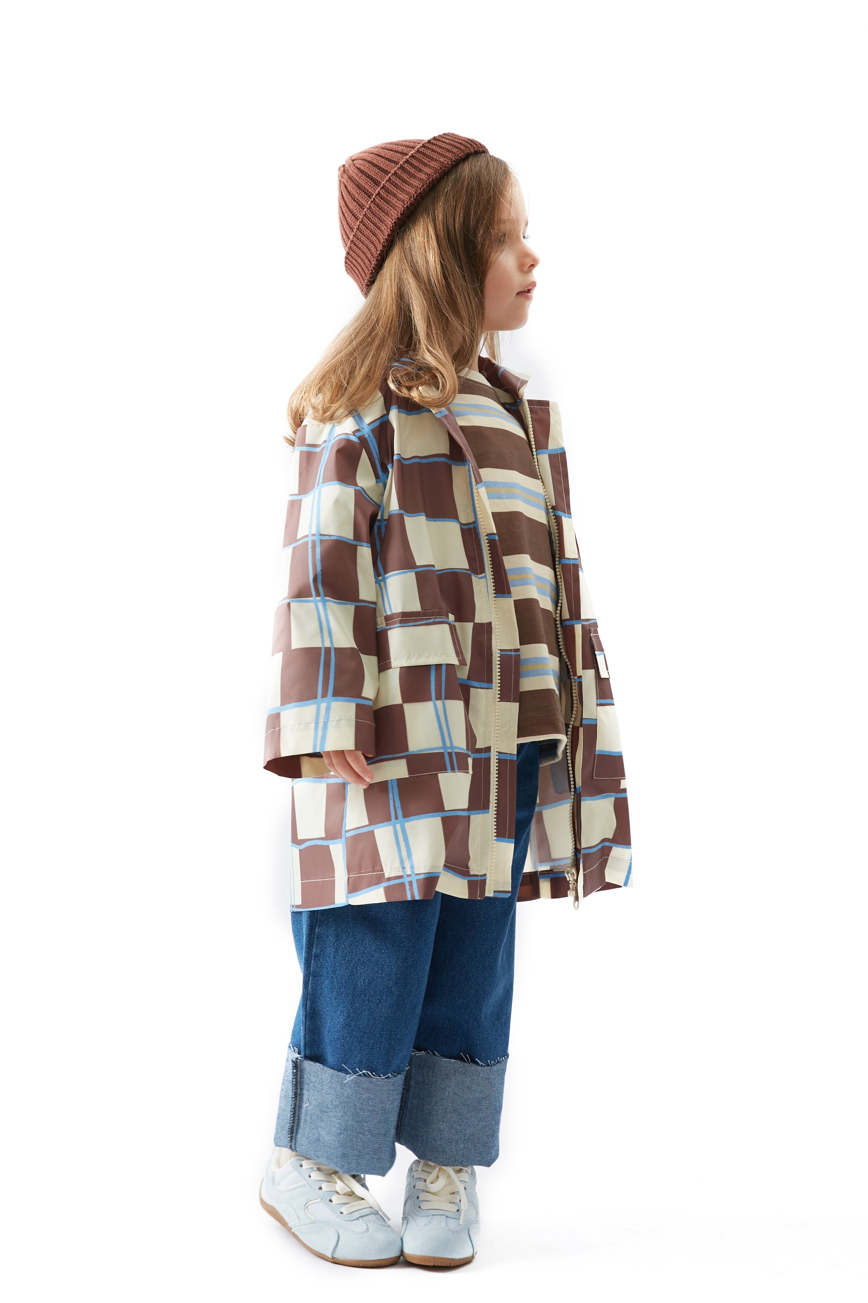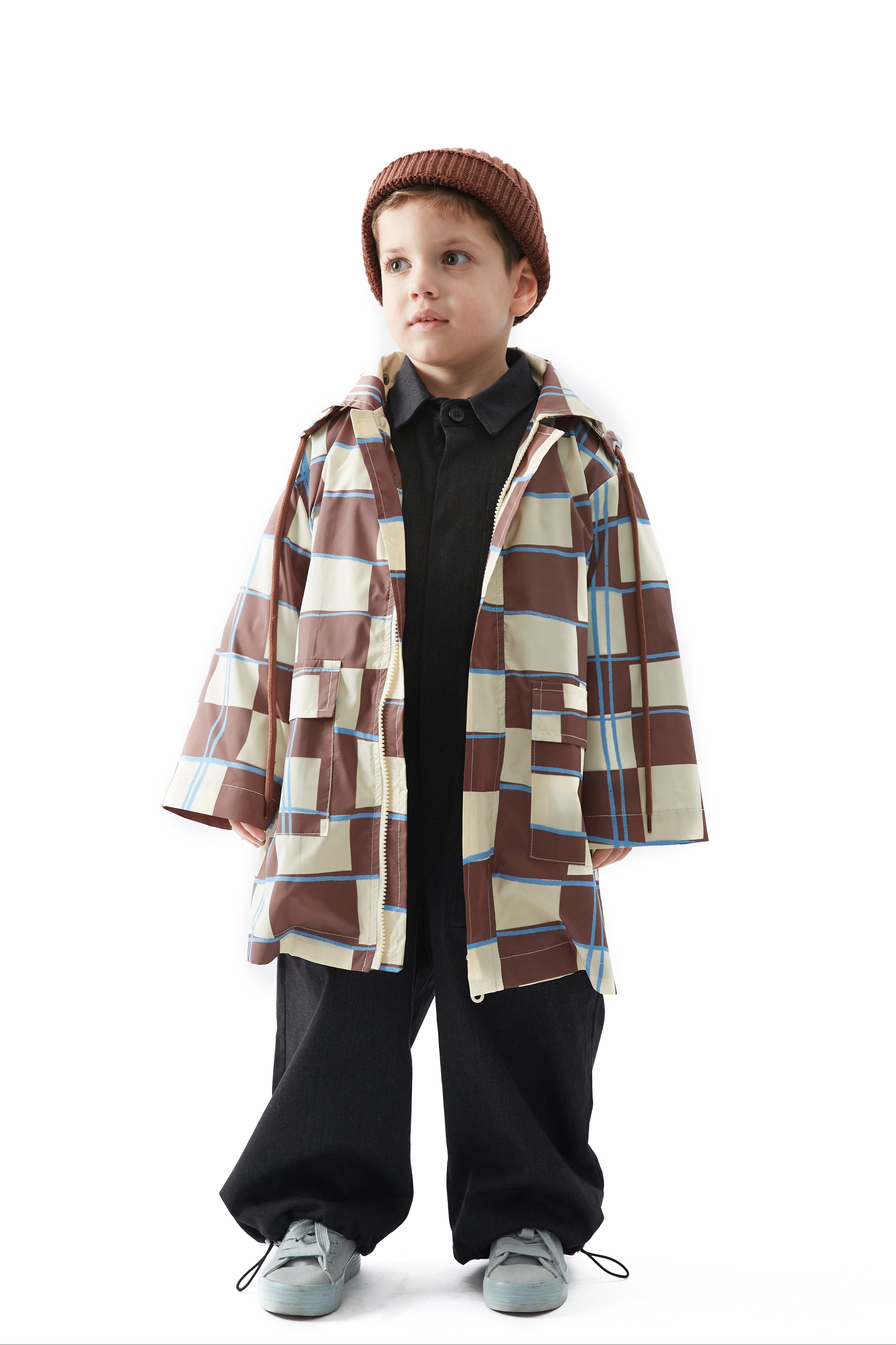 Kahve Dama Desen Yağmurluk
