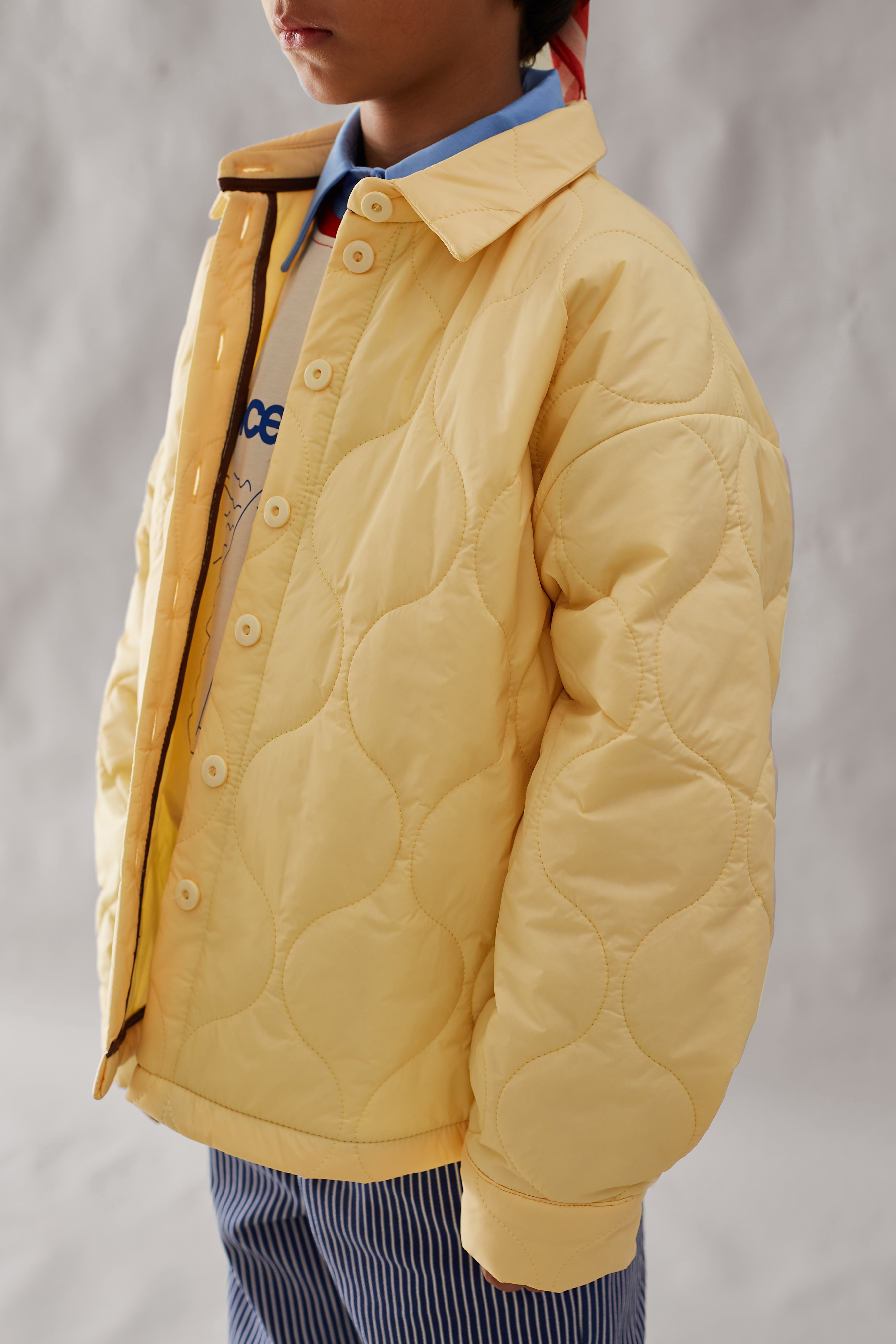 Oversize kalıp, iç kısmı kahve biye detaylı, gömlek yakalı, koldan manşetli, ince ve hafif ceket.
