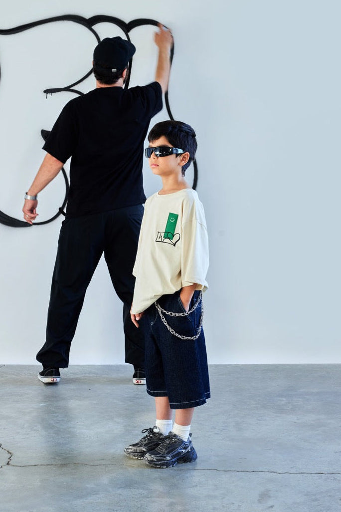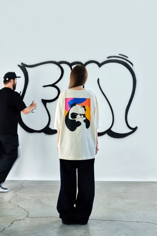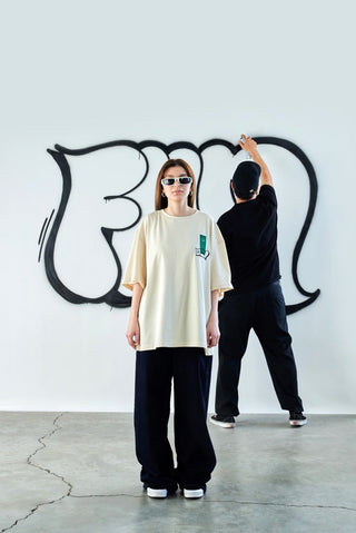 Büyük boy kalıbıyla gün boyu özgür ve rahat bir his sunar. Özel seriye ait bu tişörtler, graffiti sanatçısının imzasını taşıyan özgün bir tasarım sunuyor. Sade, karakter içinde tutulur ve dikkat çekici bir stil yaratır. Farklı kombinlerle ölçülü bir şekilde bütünleşir.