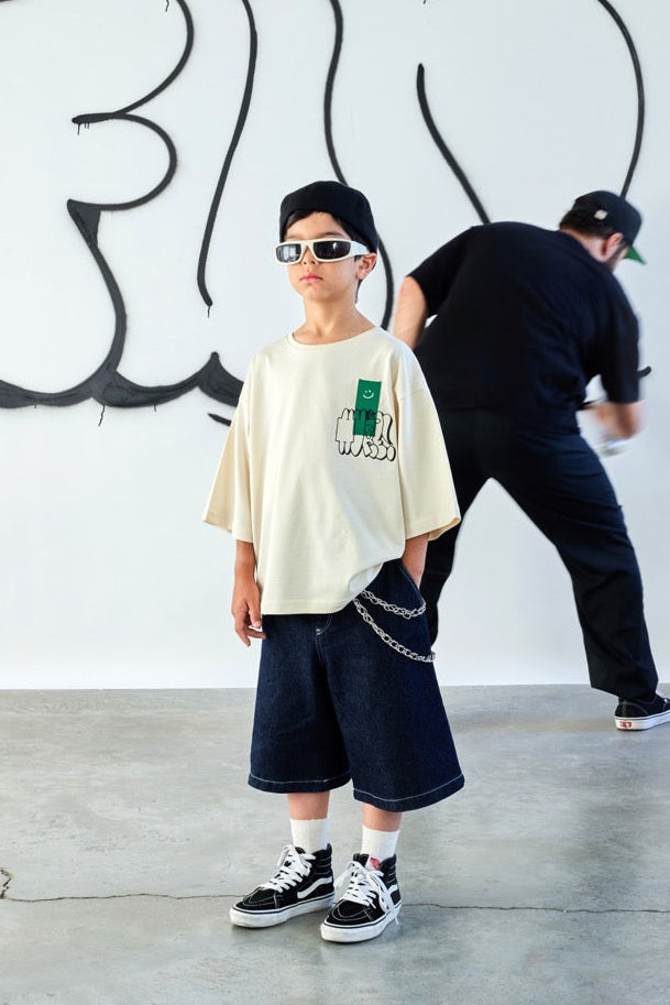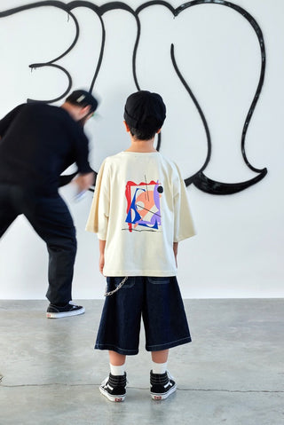 Büyük boy kalıbıyla gün boyu özgür ve rahat bir his sunar. Özel seriye ait bu tişörtler, graffiti sanatçısının imzasını taşıyan özgün bir tasarım sunuyor. Sade, karakter içinde tutulur ve dikkat çekici bir stil yaratır. Farklı kombinlerle ölçülü bir şekilde bütünleşir.