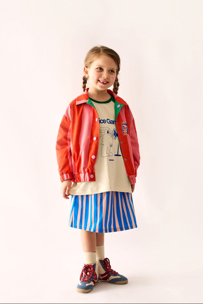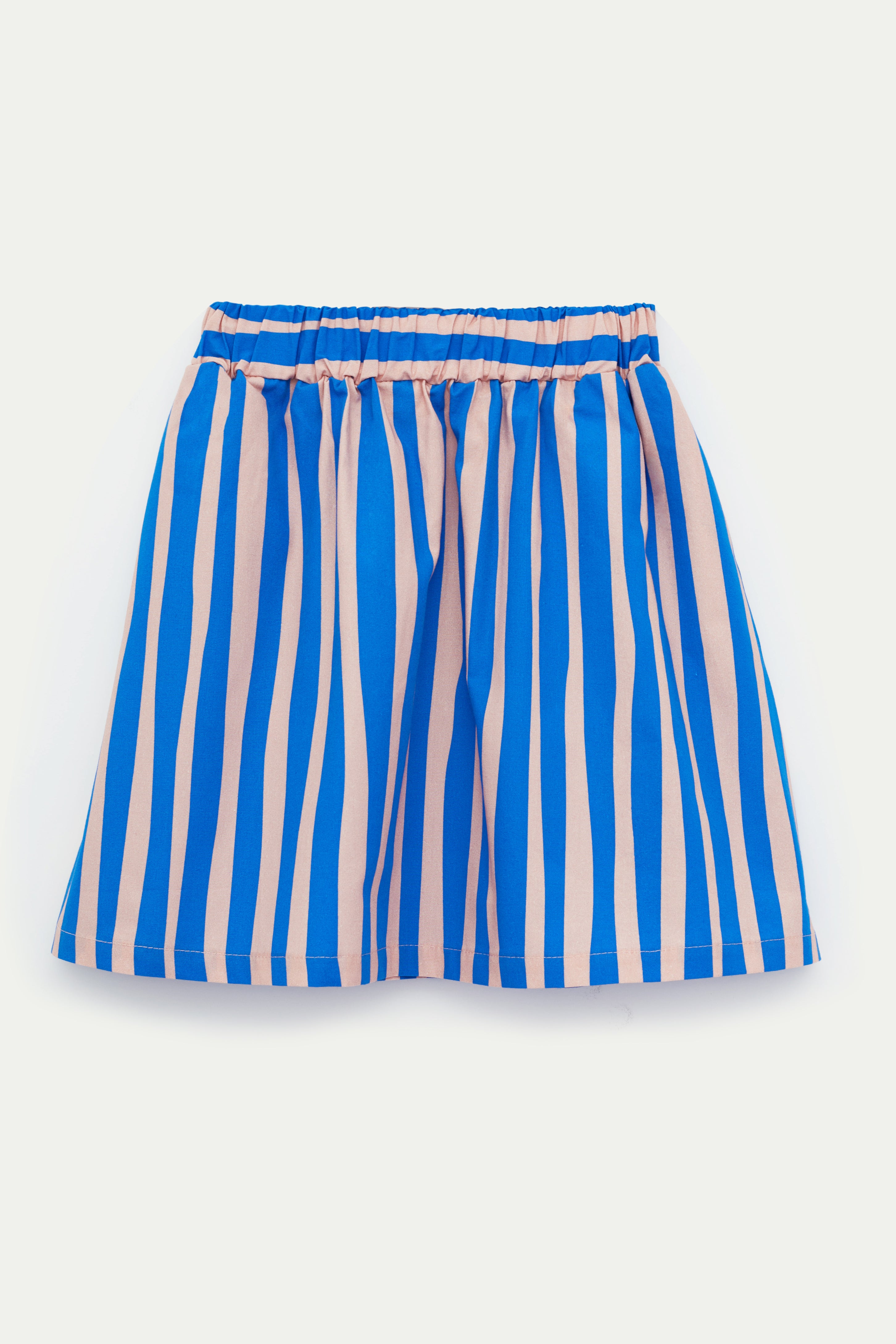 Rahat kalıp, beli lastikli, cep detaylı, çizgi desenli etek.