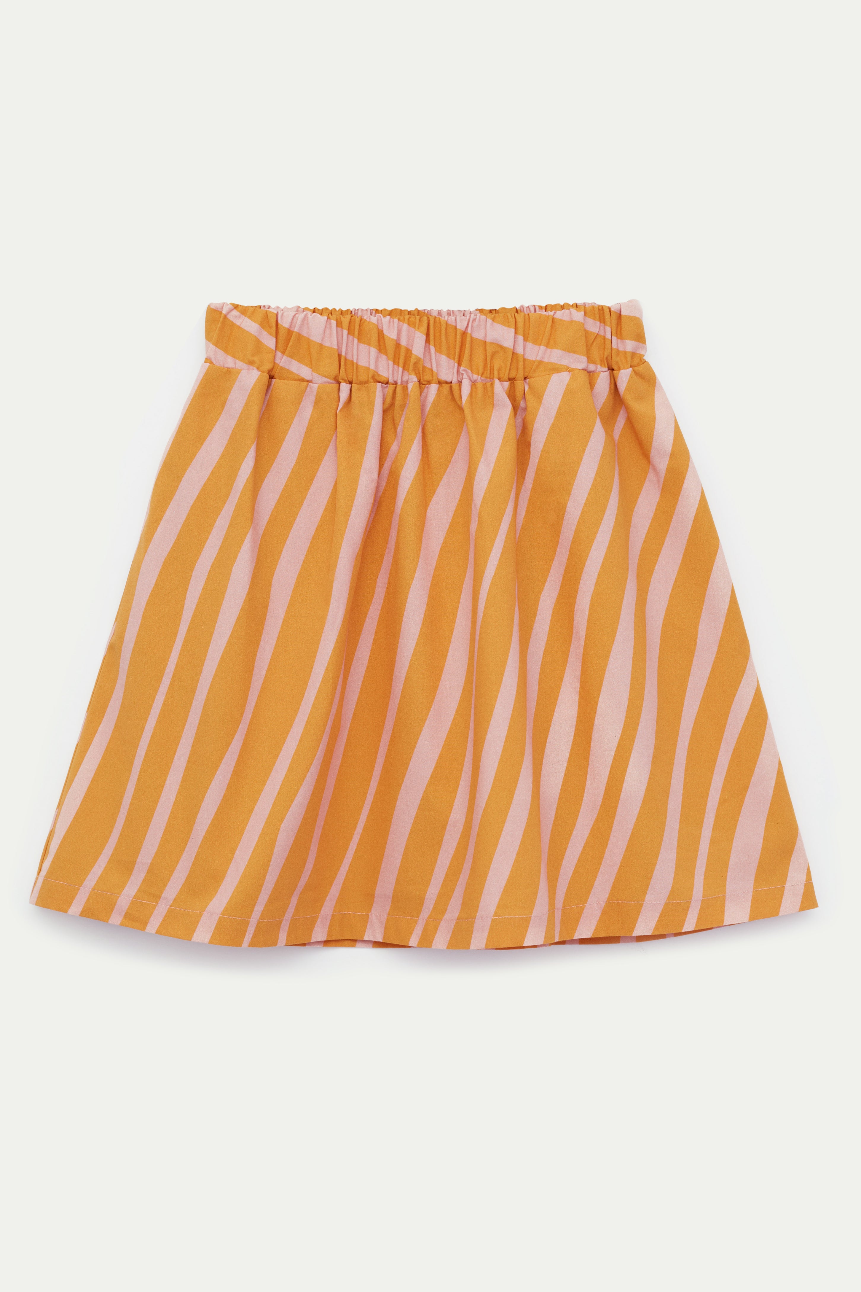 Rahat kalıp, beli lastikli, cep detaylı, çizgi desenli etek.